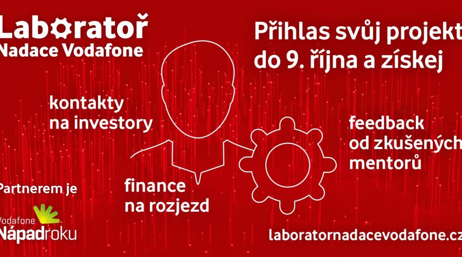 Váš nápad může někomu zlepšit život, tak si ho nenechávejte jen pro sebe. Program Laboratoř Nadace Vodafone vás přiblíží investicím a představí vás důležitým kontaktům. Přihlášky posílejte do 9. října 2022 na www.laboratornadacevodafone.cz.