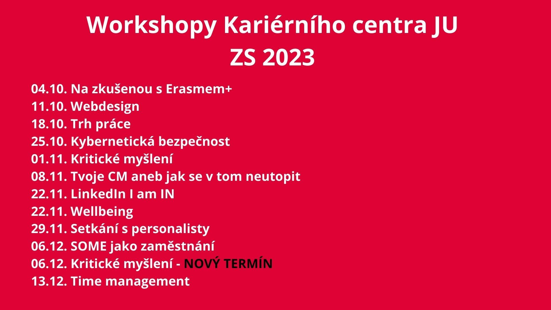 Začal nám nový zimní semestr, ve kterém jsme pro vás připravili spoustu zajímavých a užitečných workshopů.