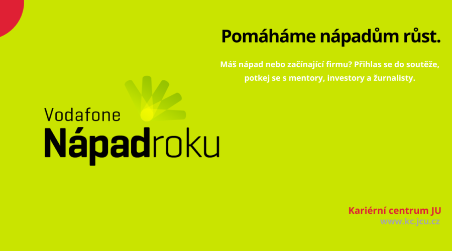 Kariérní centrum Jihočeské univerzity doporučuje studentům a absolventům zapojit se do prestižní soutěže Nápad roku 2025, která podporuje inovativní podnikatelské záměry a nápady s potenciálem růstu.