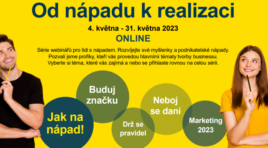 Zveme Vás k účasti na sérii webinářů Od nápadu k realizaci, která začíná již zítra 4.5.2023 a bude pokračovat každou další středu až do konce měsíce května.