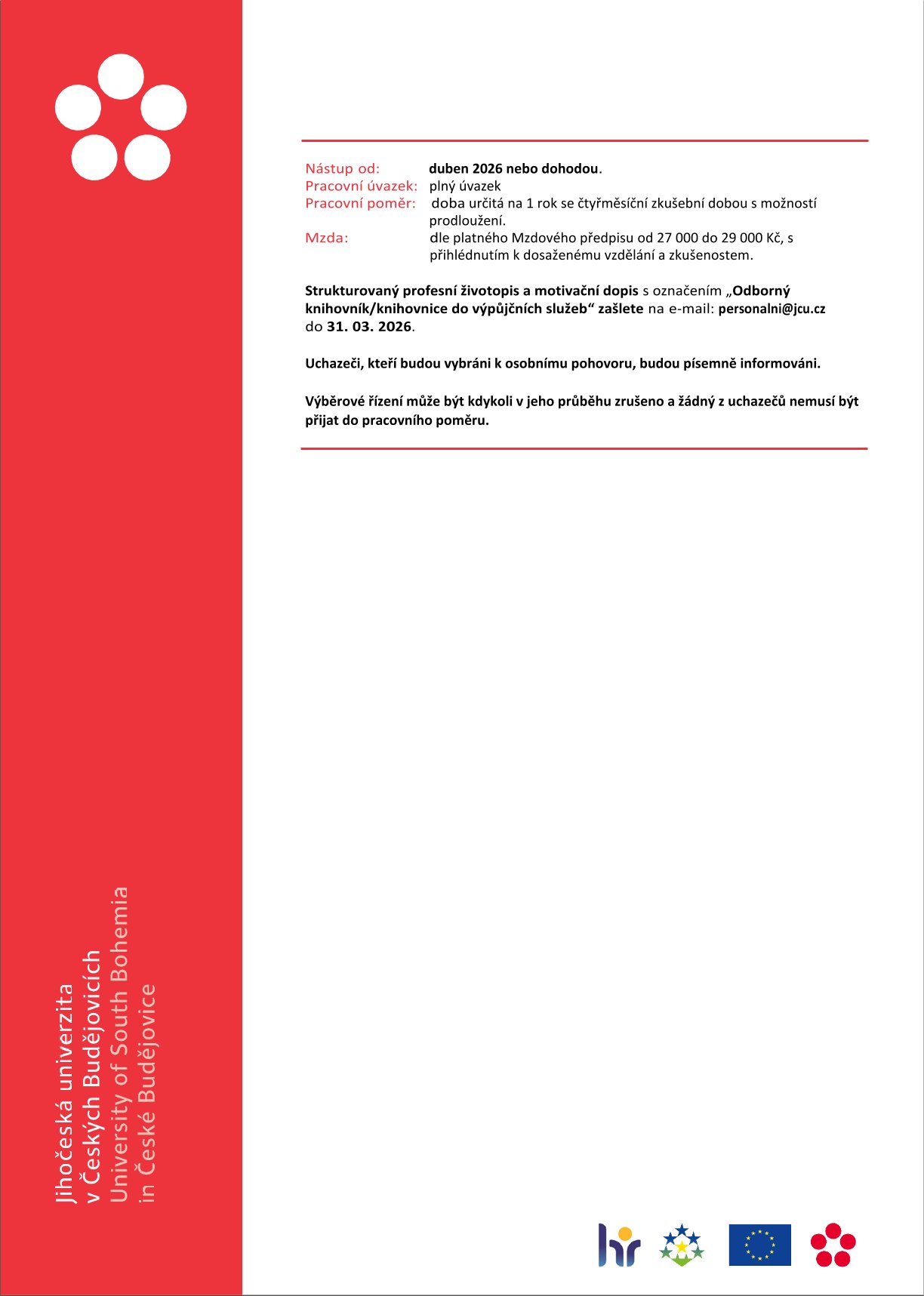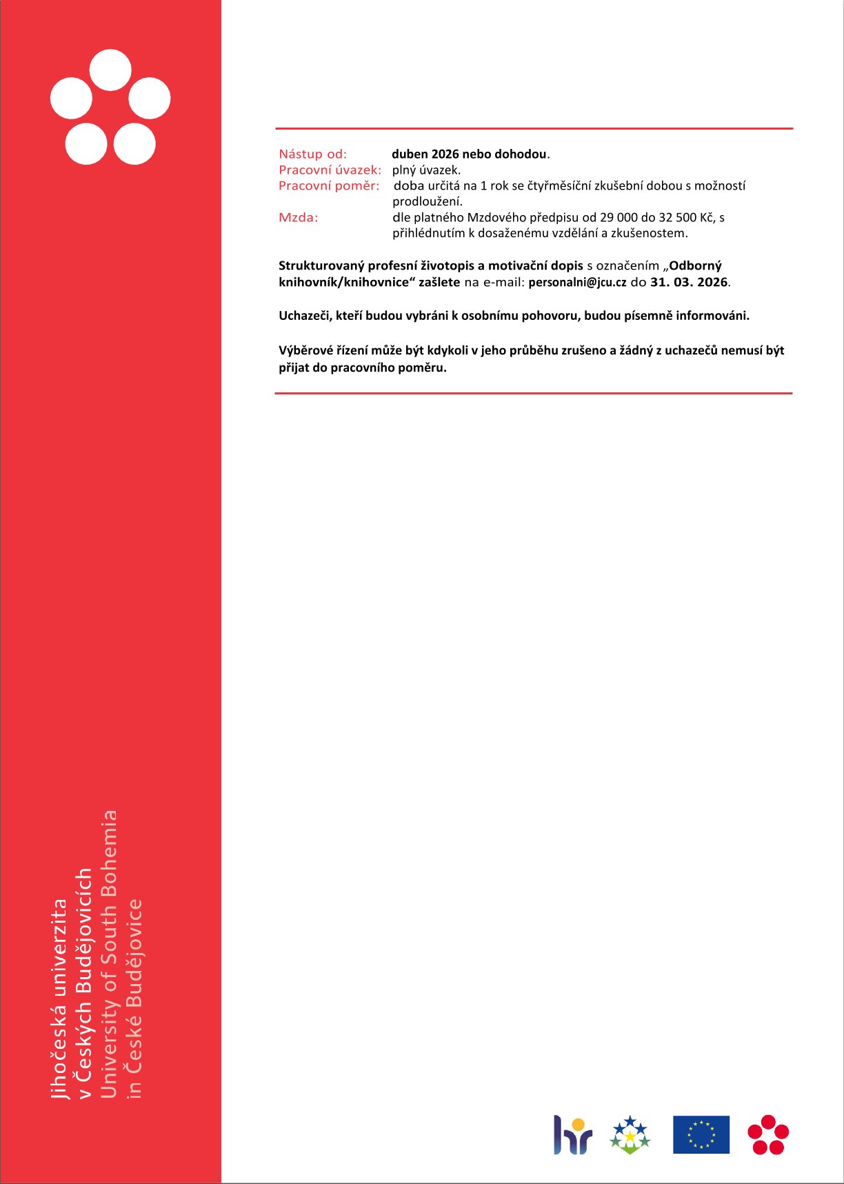 • Životopisy zasílejte na e-mail: Tato e-mailová adresa je chráněna před spamboty. Pro její zobrazení musíte mít povolen Javascript.
