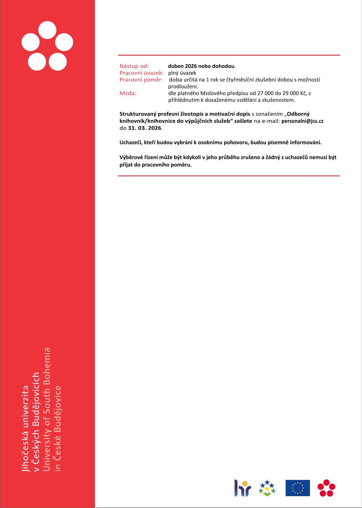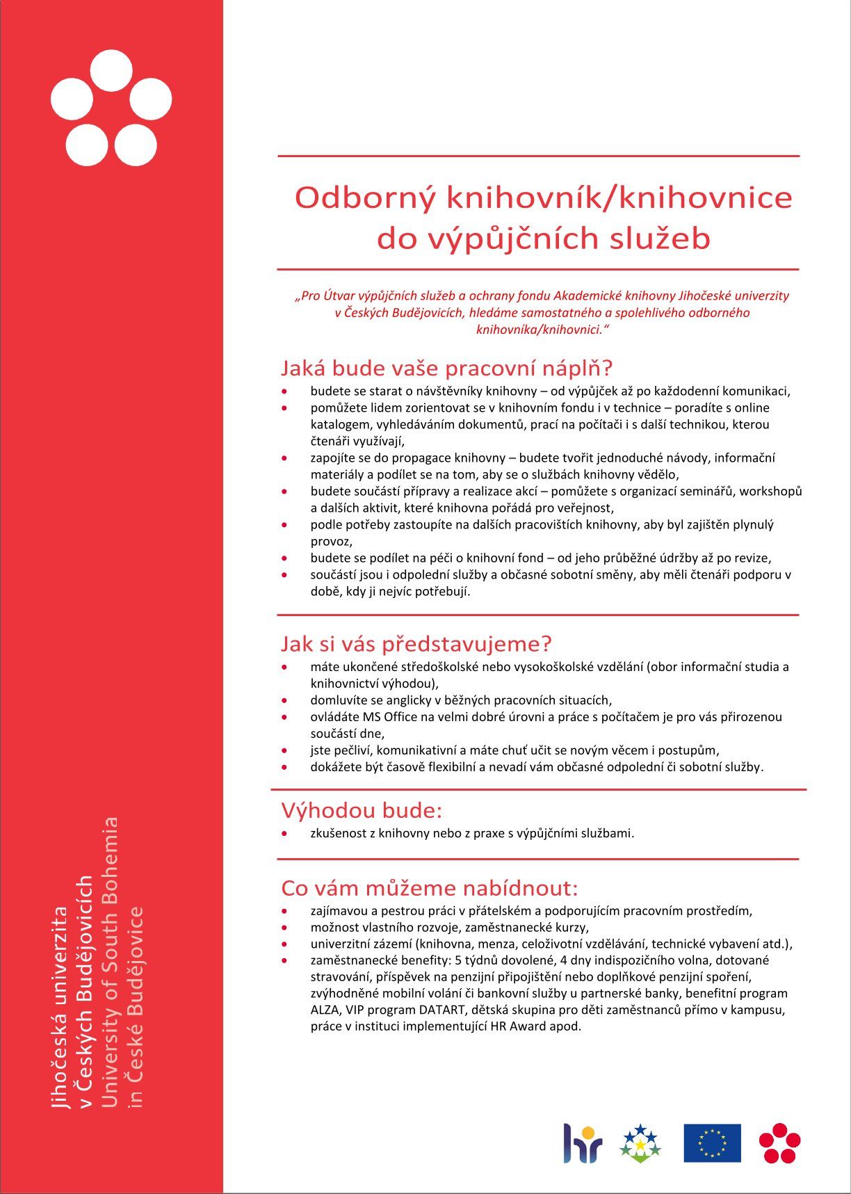 Odborný knihovník/knihovnice do výpůjčních služeb